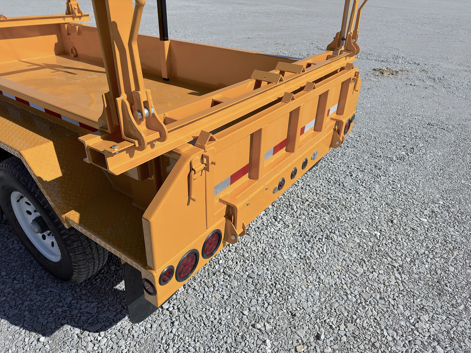 Rear bolster: 64″ wide with pole stops (Built into tubular constructed tailgate)
