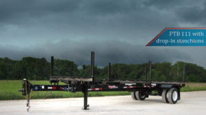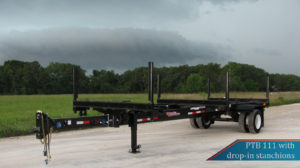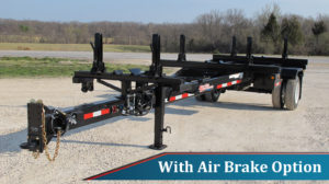 Rear bolster: 5″ double “C” fabricated bolster with 21″ lever lock stanchions