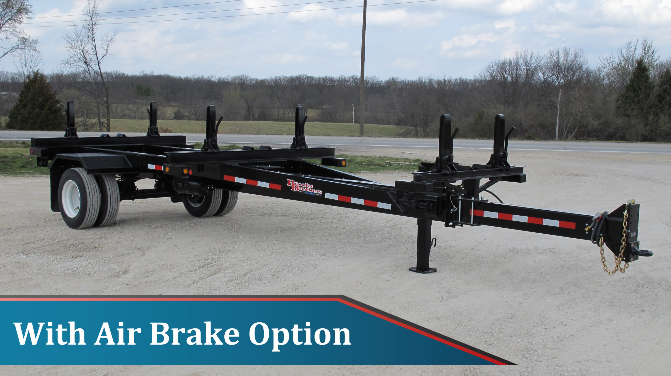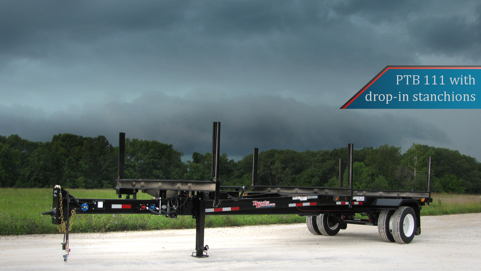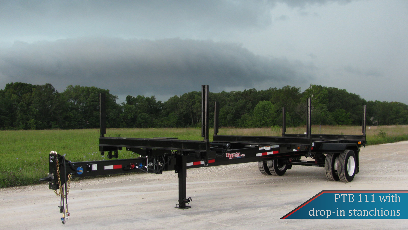 Rear bolster: 5″ double “C” fabricated bolster with 21″ lever lock stanchions