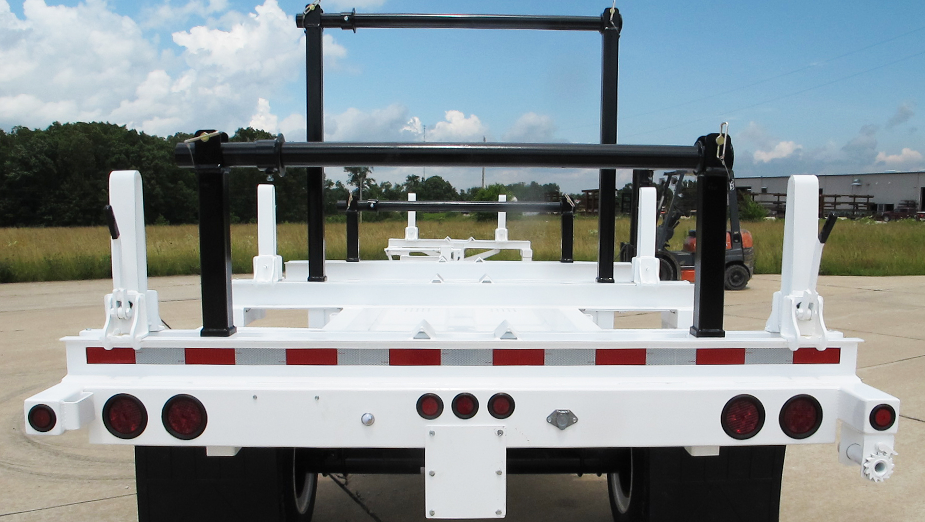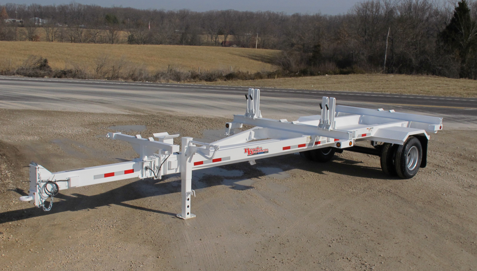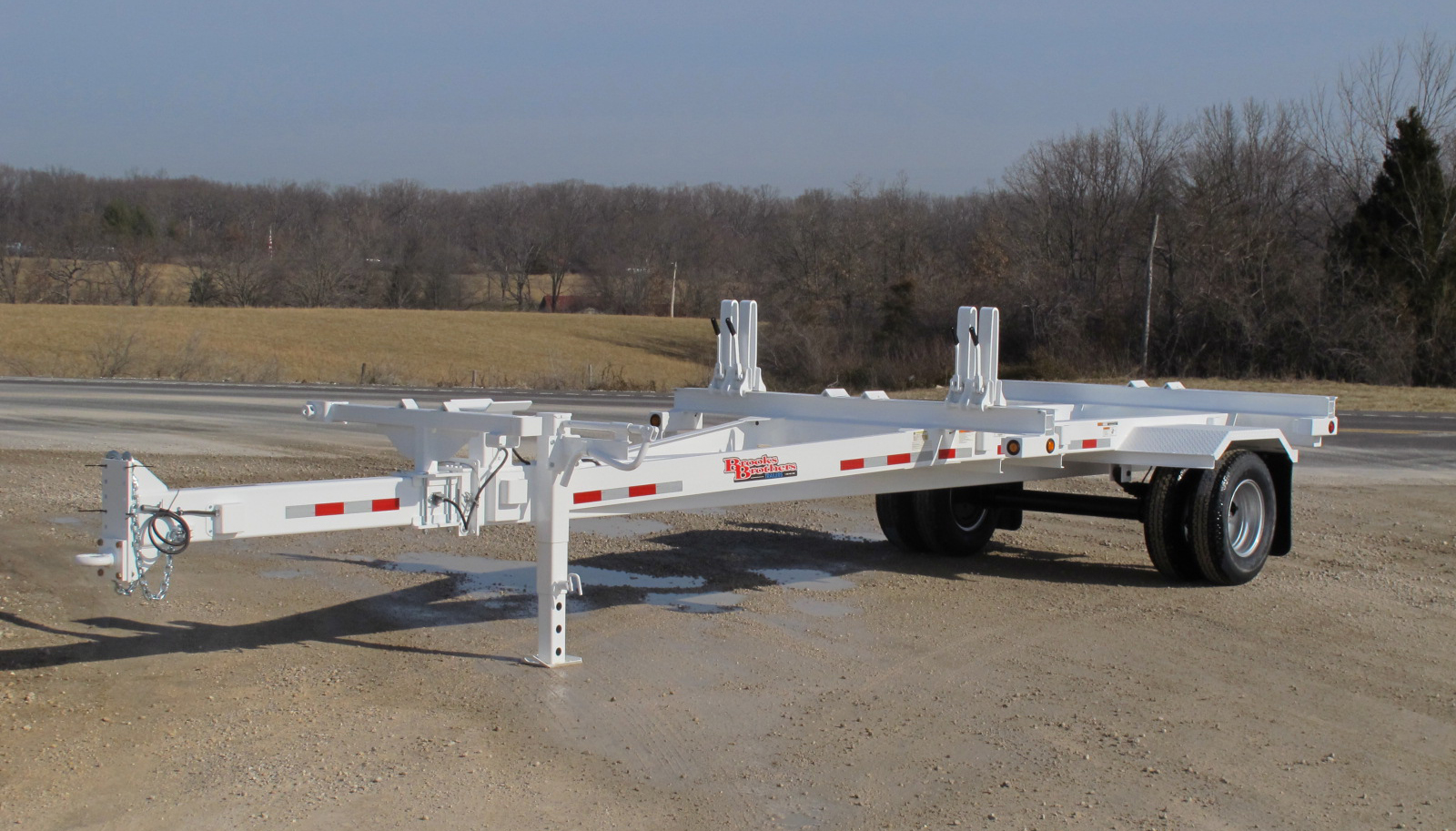 Rear bolster: 5″ double “C” fabricated bolster with 21″ lever lock stanchions