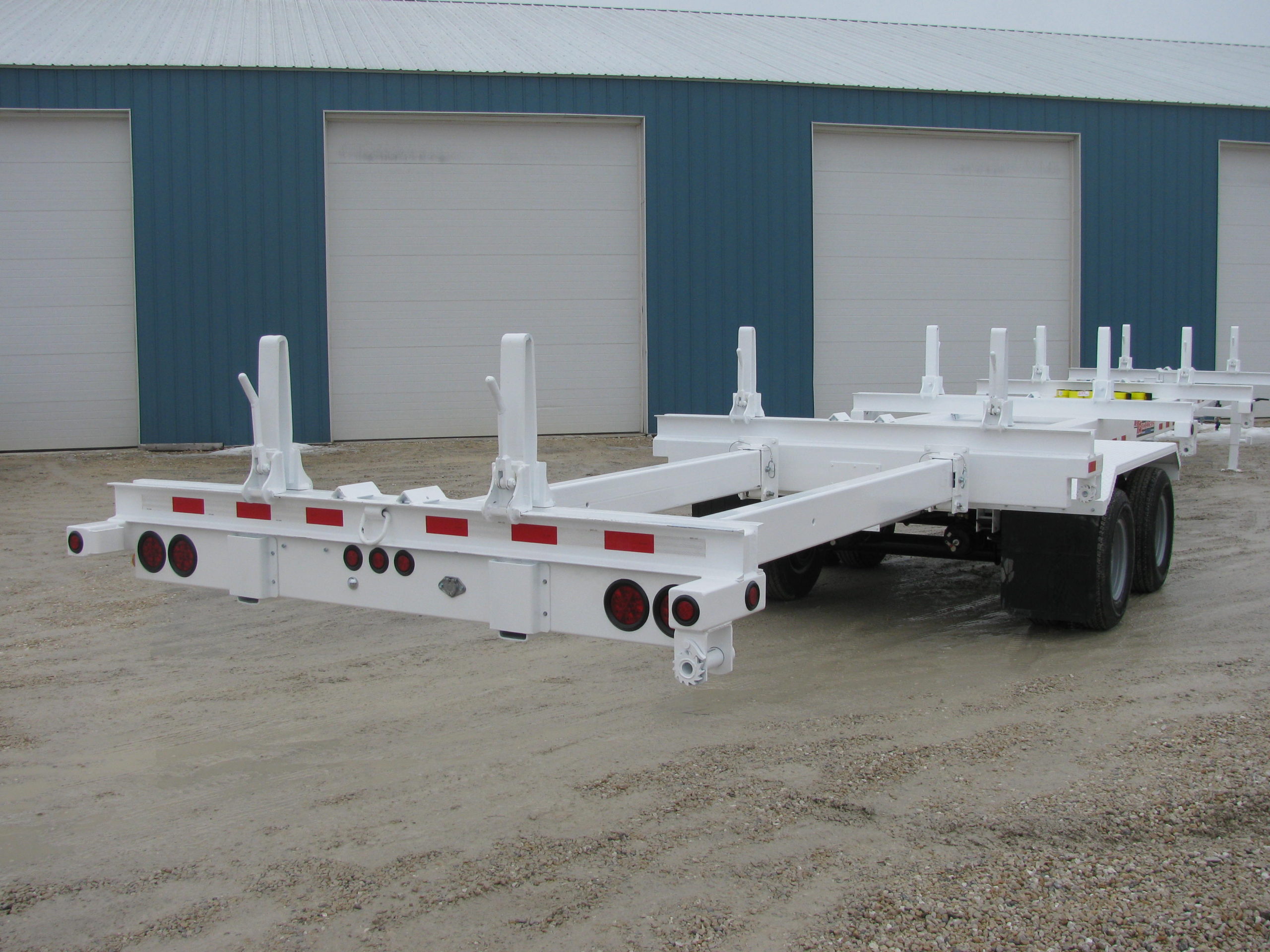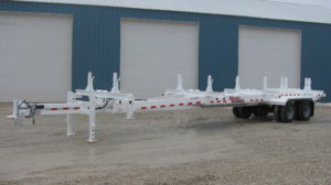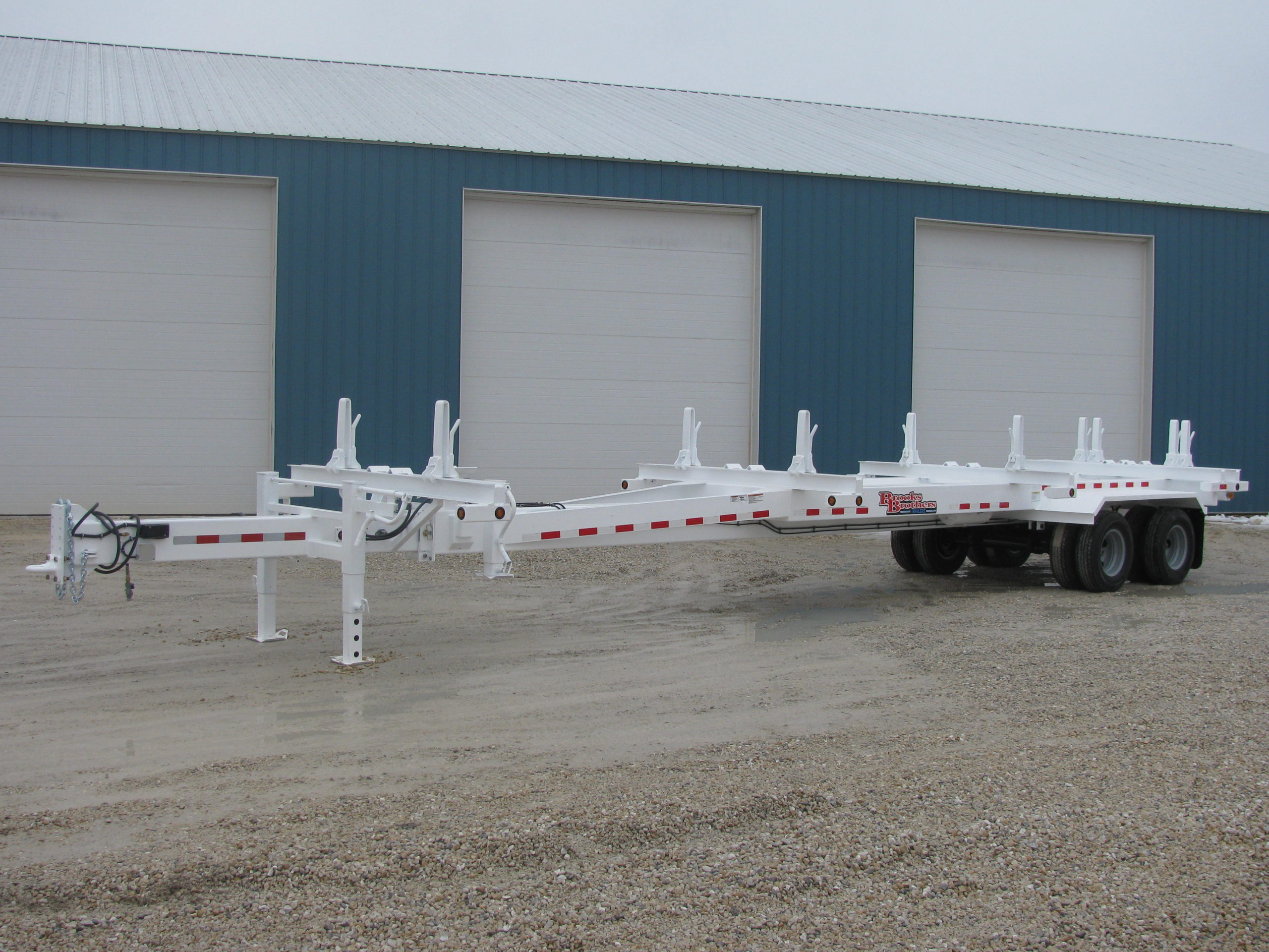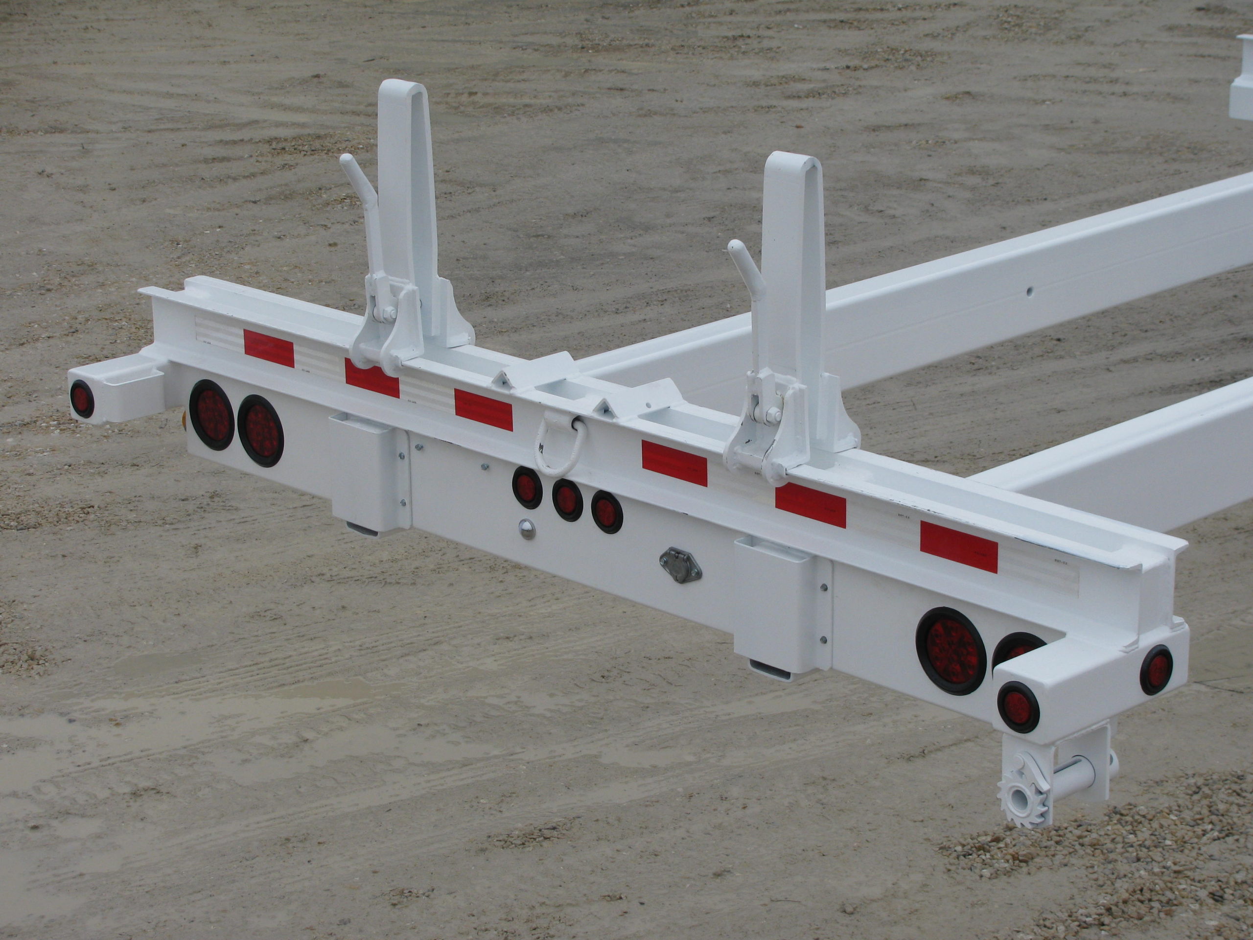 Front Bolster: Non-adjustable 5″ double “C” fabricated bolster (95″ wide) with 21″ lever lock stanchions on extendable tongue