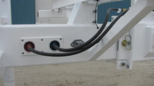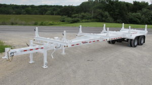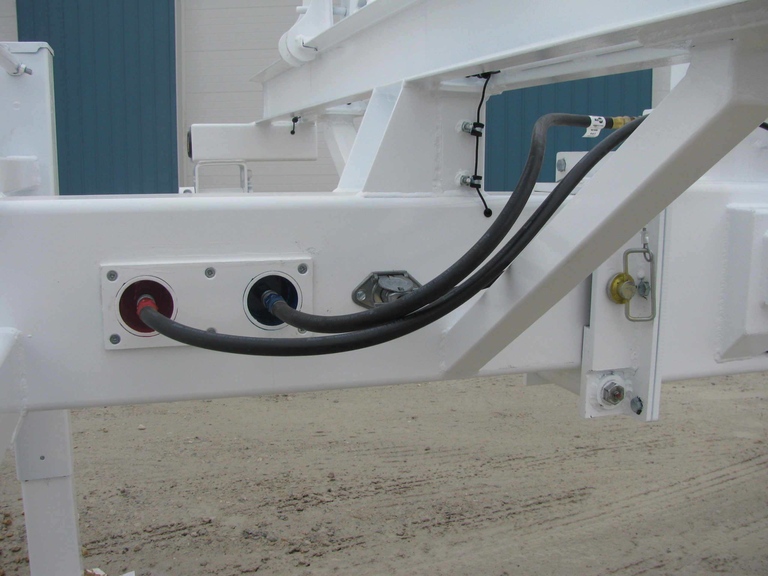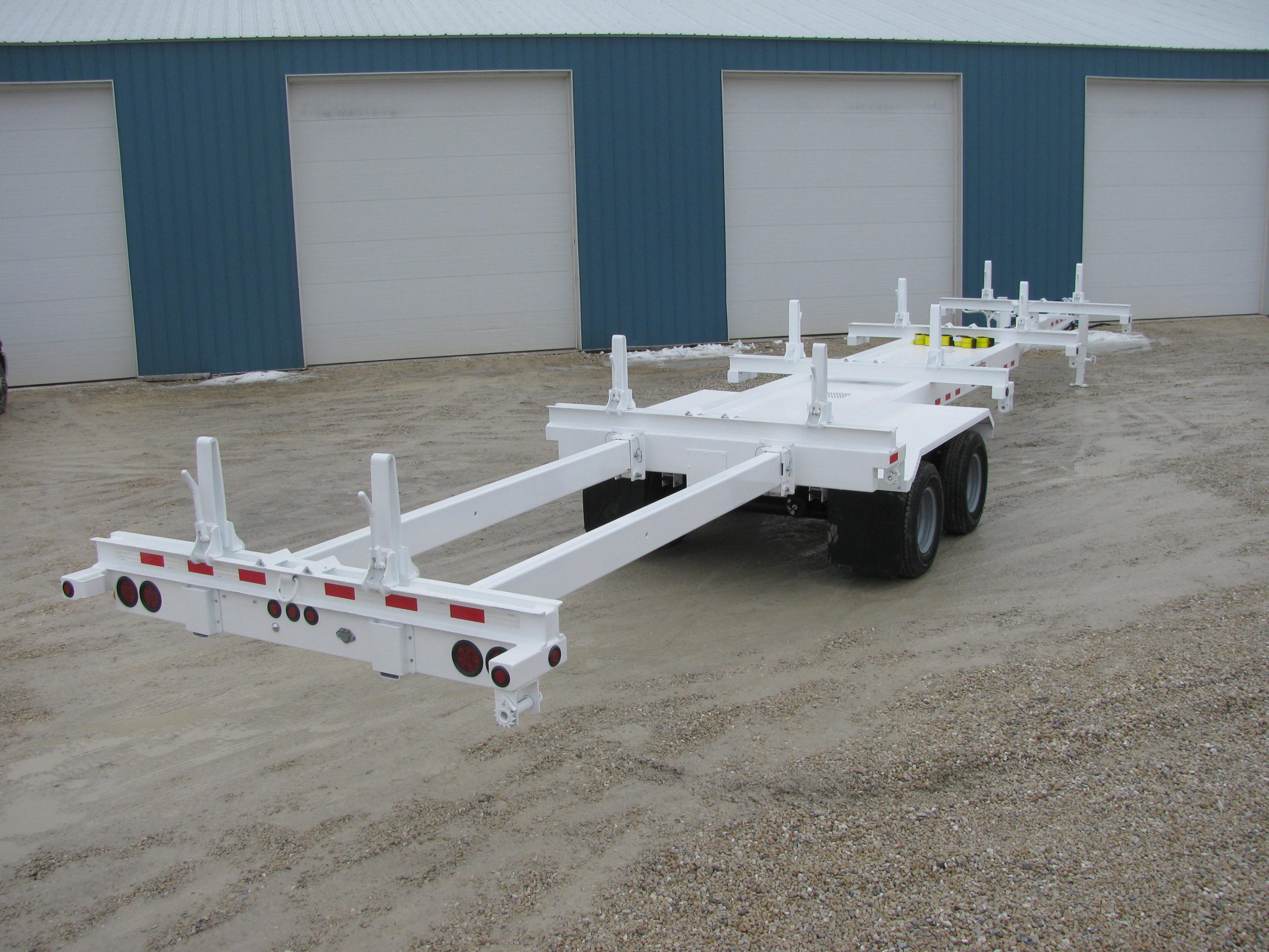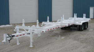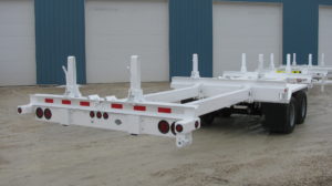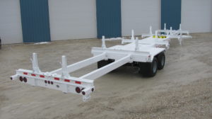 Front Bolster: Non-adjustable 5″ double “C” fabricated bolster (95″ wide) with 21″ lever lock stanchions on extendable tongue