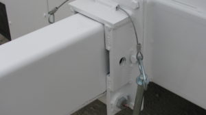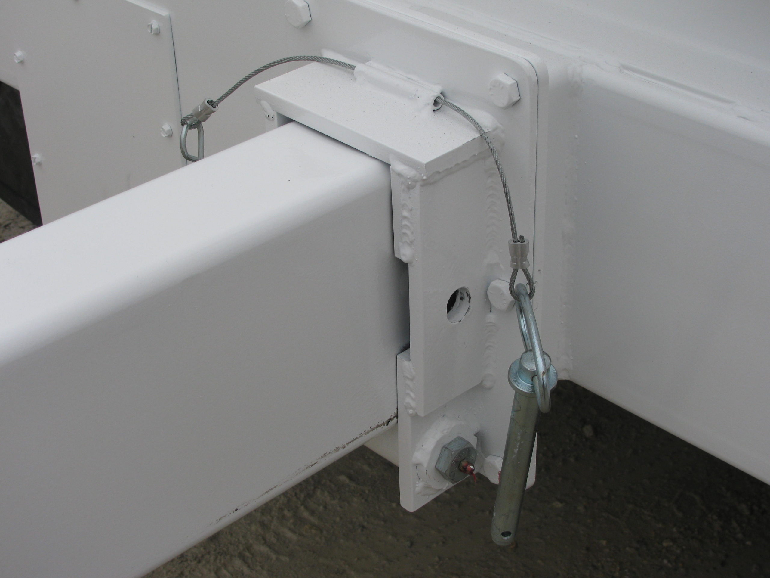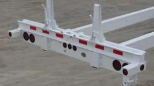 Rear bolster: 5″ double “C” fabricated bolster (95″ wide) with 21″ lever lock stanchions