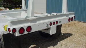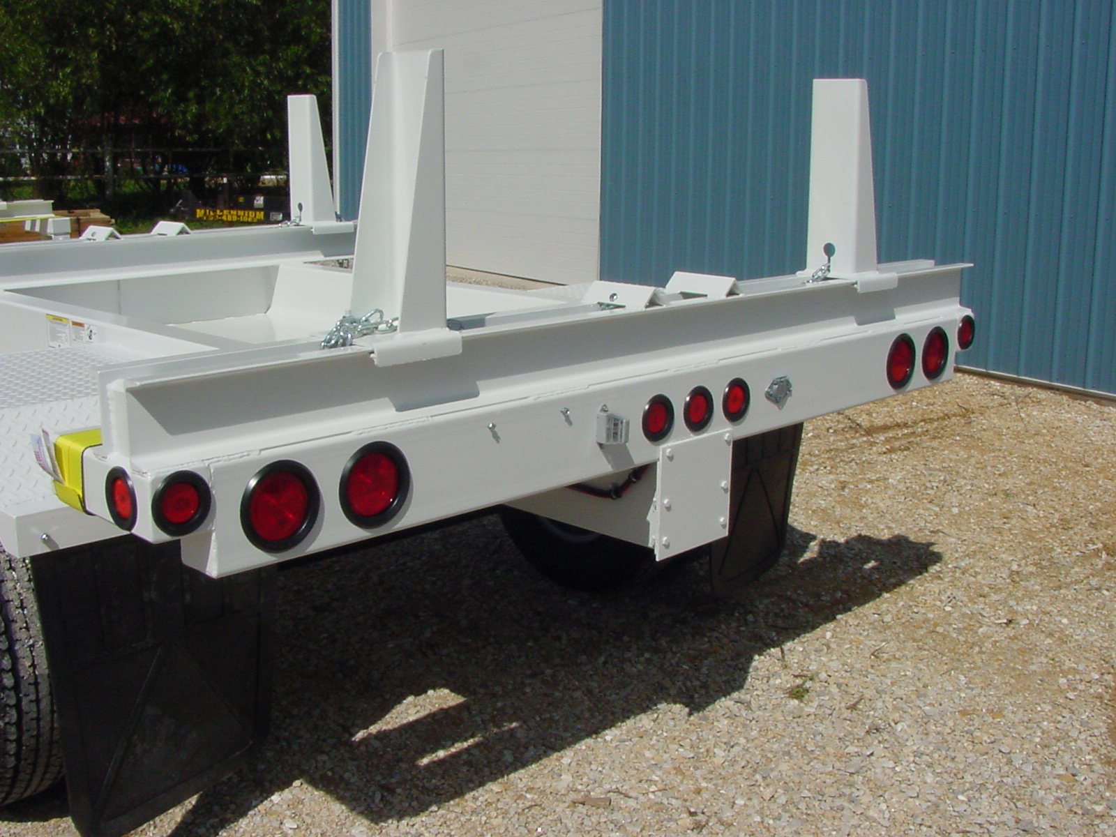 Rear bolster: 5″ double “C” fabricated bolster with 21″ lever lock stanchions