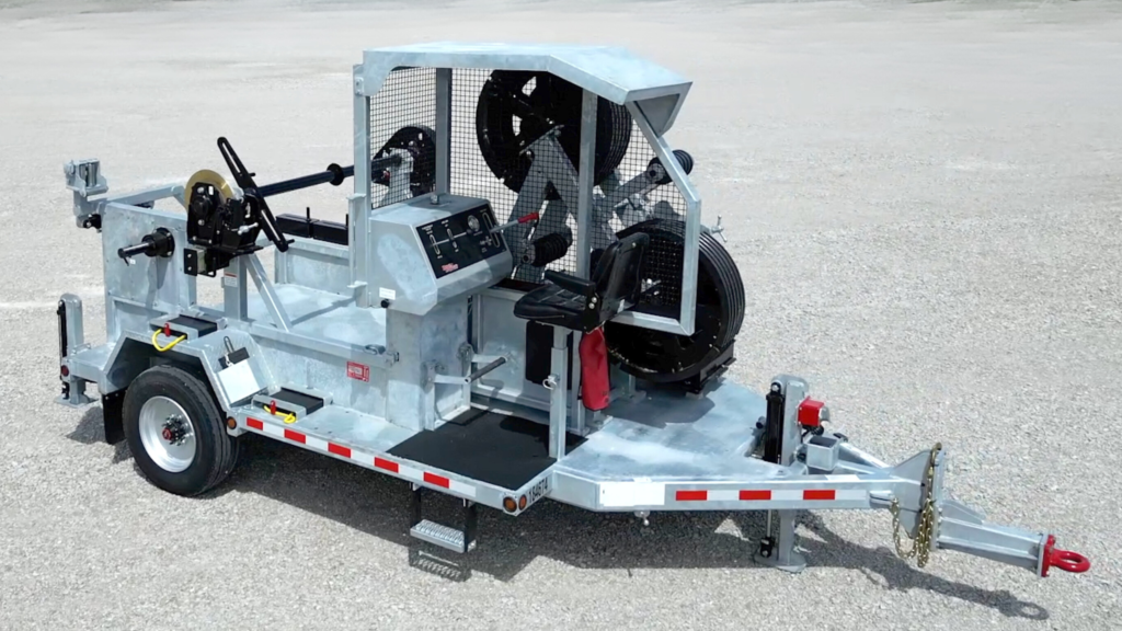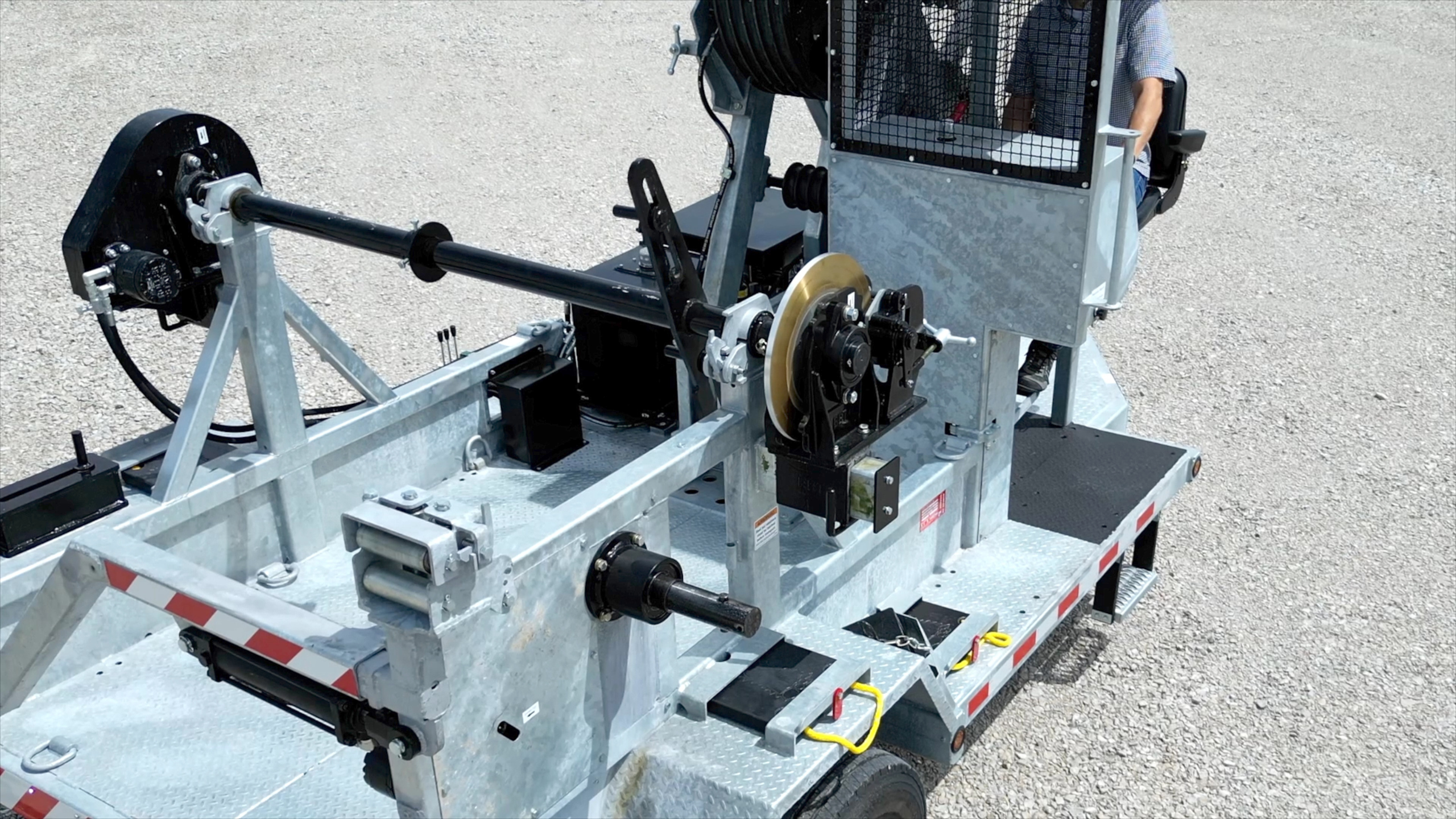 (2) Enclosed roller guide assemblies mounted at the base of the bull wheels for aiding conductor onto the bull wheel grooves