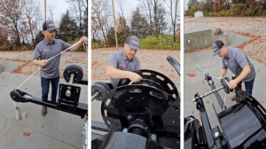 Hydraulics are powered by the aux. tool circuit of the Skid Steer