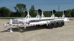 Our reel and pole trailers can be outfitted with a variety of different tensioning brakes and hydraulic take-up units. Our reel trailers can be configured for single or multiple reels. Please contact our sales staff to discuss your specific needs.
