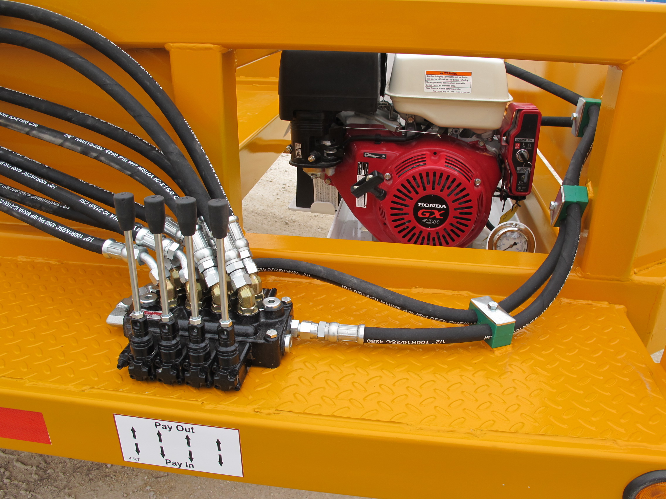 Our reel and pole trailers can be outfitted with a variety of different tensioning brakes and hydraulic take-up units. Our reel trailers can be configured for single or multiple reels. Please contact our sales staff to discuss your specific needs.