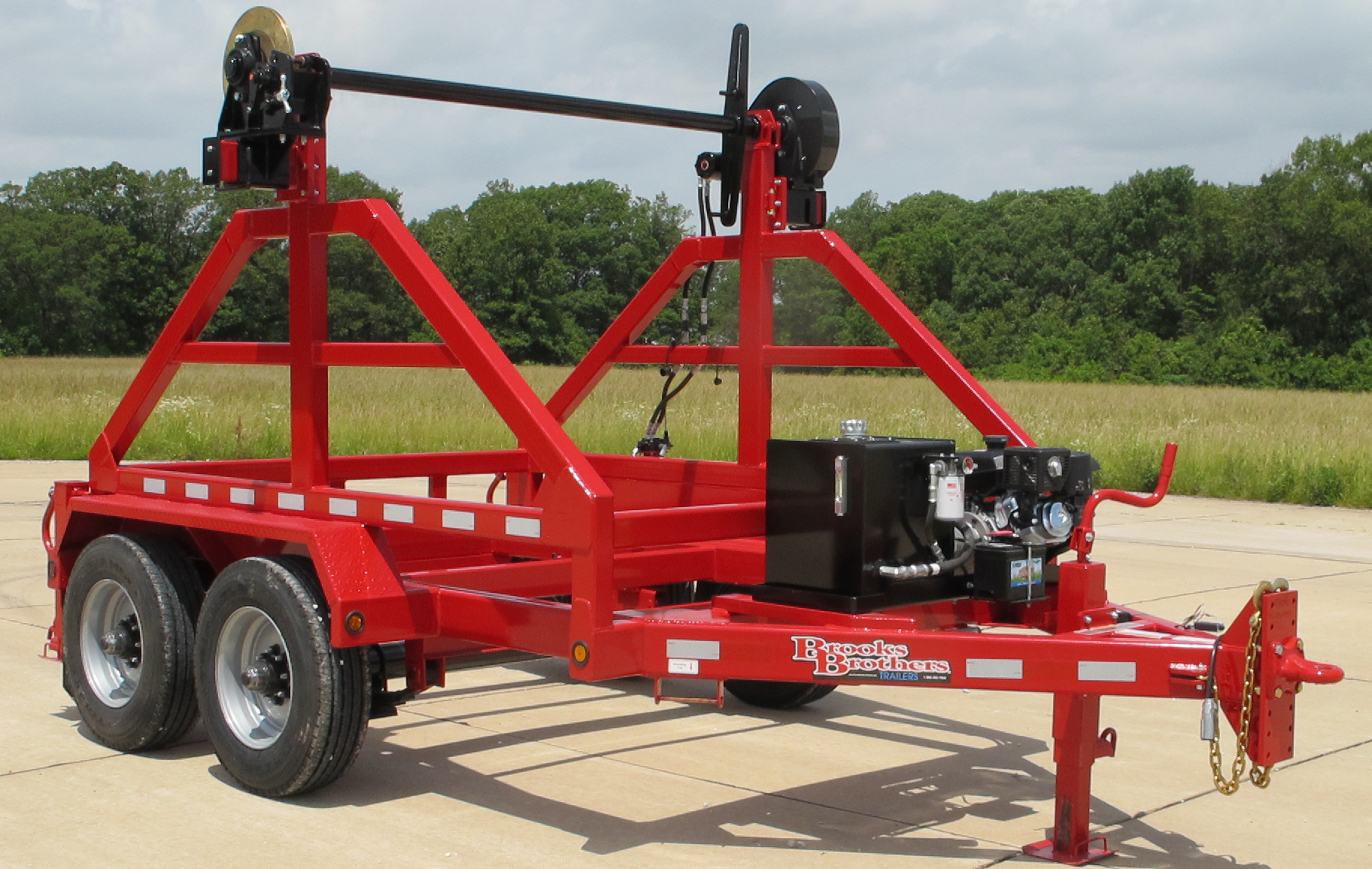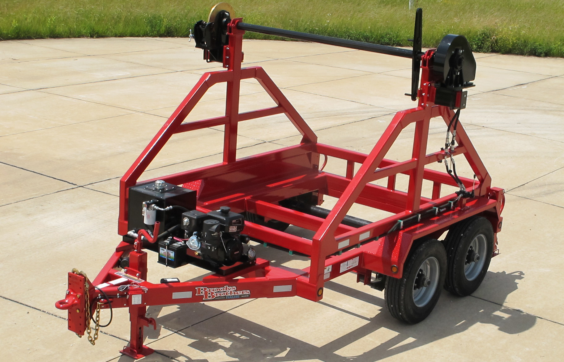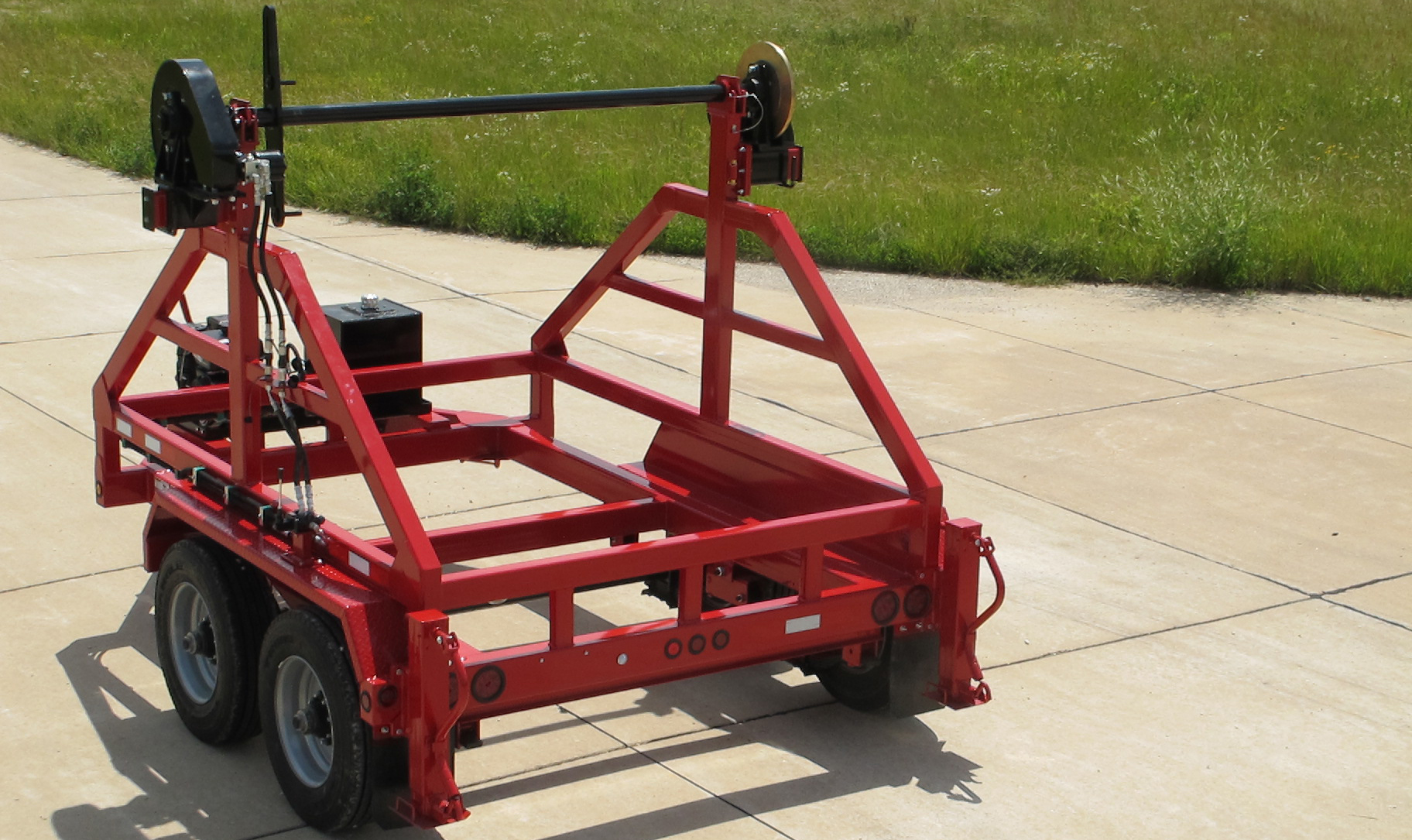 Built to haul a Reel: (1) One 127″D x 72″W x Center Hole 3” Center Hole x 15,000 lbs.