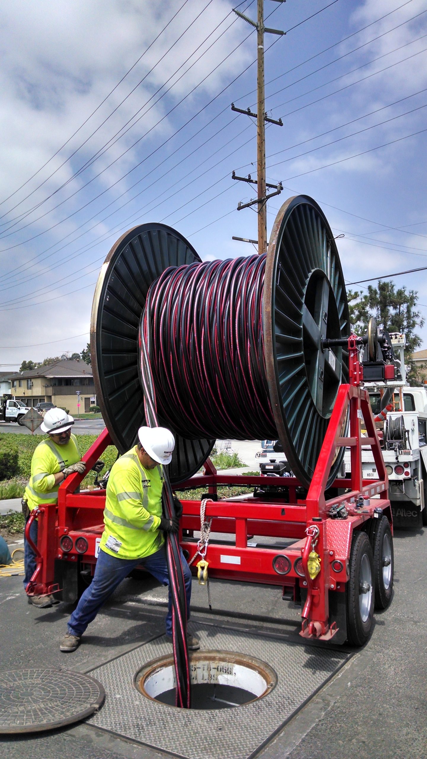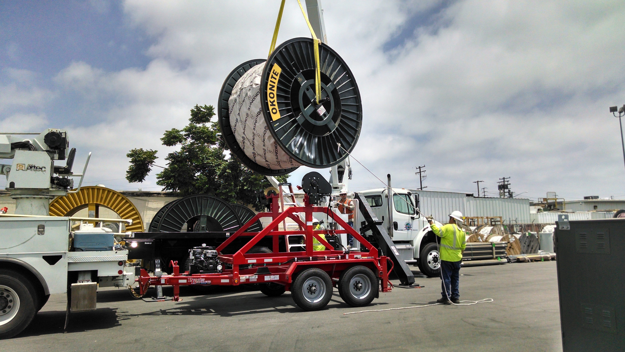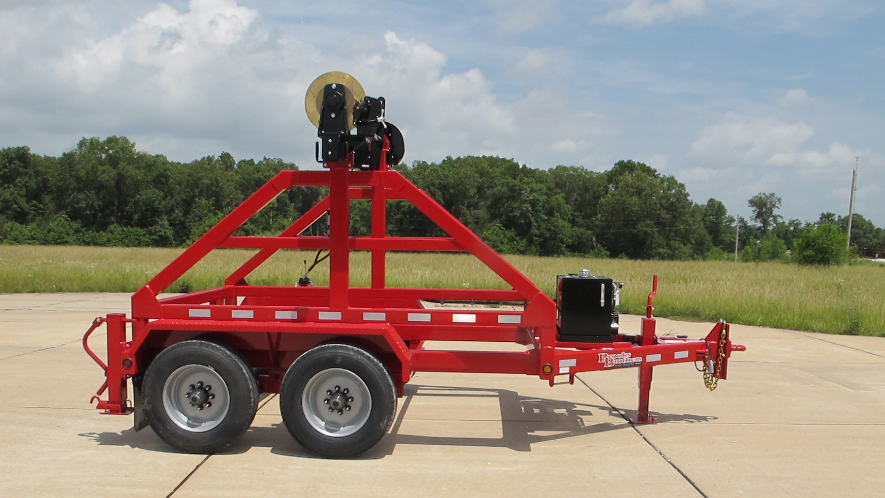 Built to haul a Reel: (1) One 127″D x 72″W x Center Hole 3” Center Hole x 15,000 lbs.